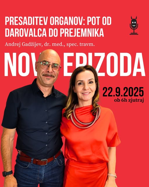 16. epizoda podcasta Hudičev advokat Presaditev organov: pot od prejemnika do darovalca je izšla 22. 9. 2025 ob 6h zjutraj. Odgovore na “hudičeva vprašanja” poslušajte tukaj.